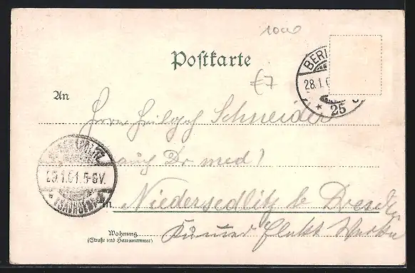gelaufen 1901, Briefmarke entfernt, guter Zustand