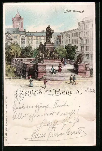 Lithographie Berlin, Luther-Denkmal, Neuer Markt