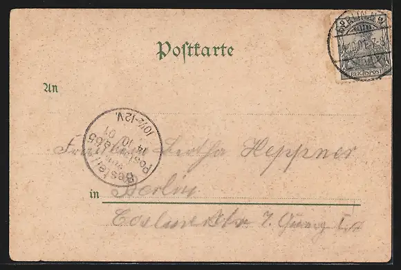 gelaufen 1901, Eckknicke re., minimale Einrisse oben mittig, guter Zustand
