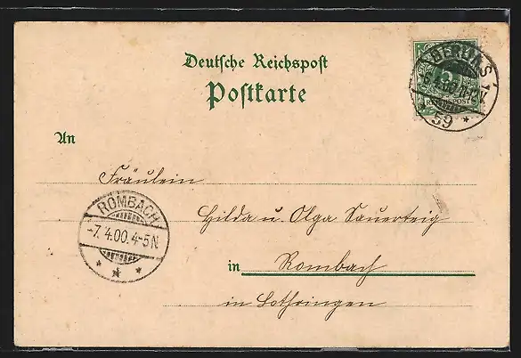 gelaufen 1900, Eckknick li. oben, guter Zustand