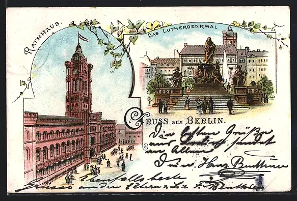 Lithographie Berlin, Lutherdenkmal, Rotes Rathaus, Neuer Markt