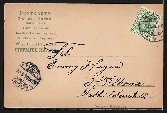 gelaufen 1904, Eckknick re. unten, guter Zustand