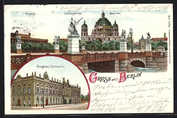 Lithographie Berlin, Museum, Zeughaus & Schlossbrücke