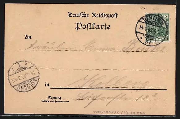 gelaufen 1903, Stempelspur, Eckknicke, guter Zustand