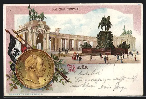 Lithographie Berlin, National-Denkmal Kaiser Wilhelm I.