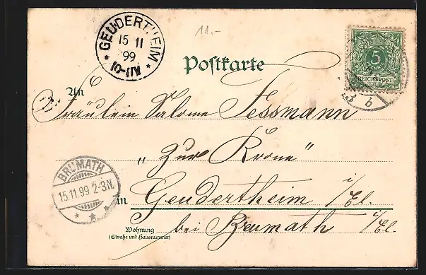 gelaufen 1899, Eckknick re. unten, guter Zustand