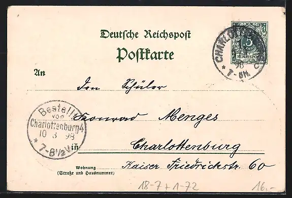gelaufen 1898, leichter Eckschaden li. oben, guter Zustand
