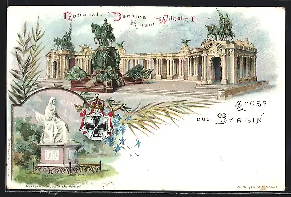 Lithographie Berlin, National-Denkmal Kaiser Wilhelm I. Kaiserin Auguste Denkmal