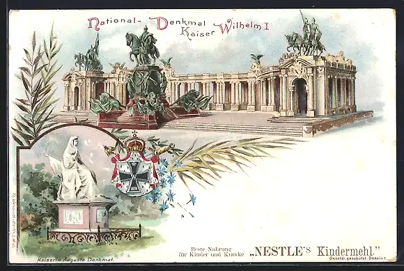 Lithographie Berlin, National-Denkmal Kaiser Wilhelm I. Kaiserin Auguste Denkmal