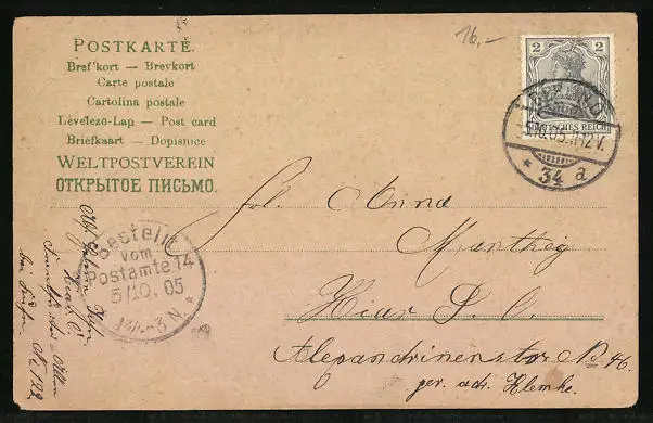gelaufen 1905, Eckknicke oben, guter Zustand