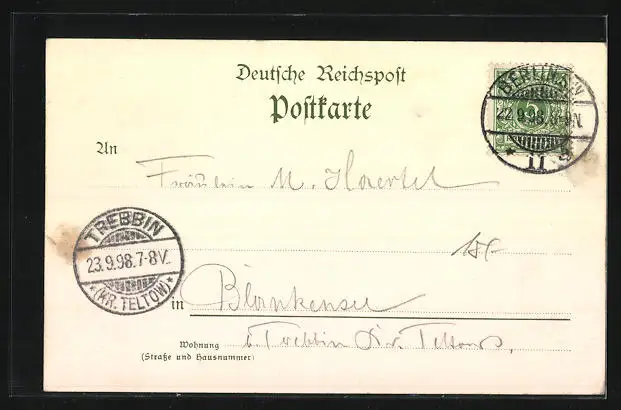 gelaufen 1898, Eckknick li. unten, guter Zustand