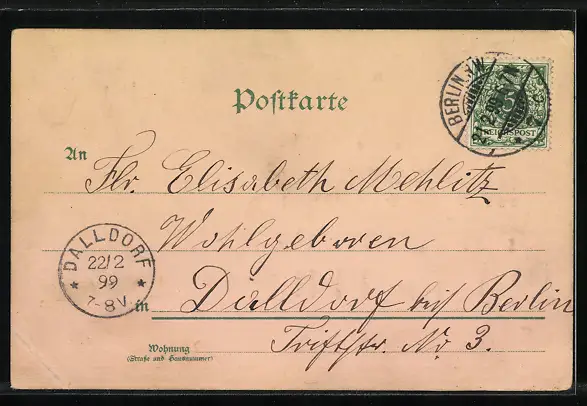 gelaufen 1899, Eckknick re. unten, guter Zustand