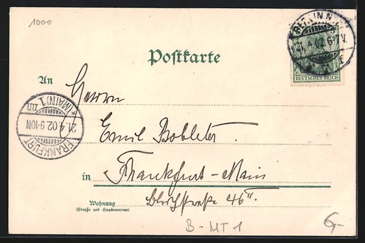 gelaufen 1902, Eckknick oben rechts, guter Zustand