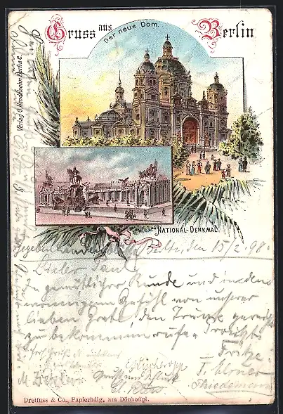 Lithographie Berlin, Neuer Dom und National-Denkmal