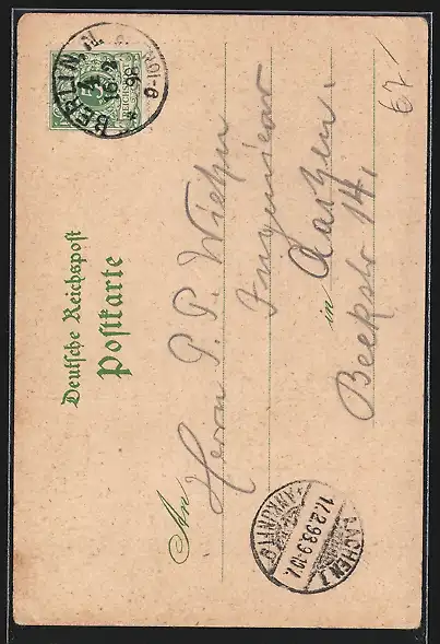 gelaufen 1898, Eckknicke re. unten u. li., Bugspur unten mittig, guter Zustand