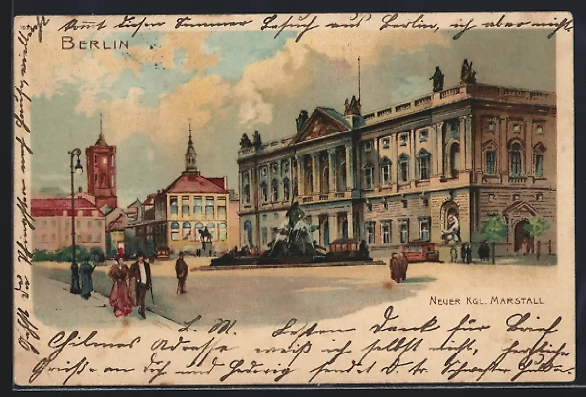 Lithographie Berlin, Neuer Kgl. Marstall, Rotes Rathaus