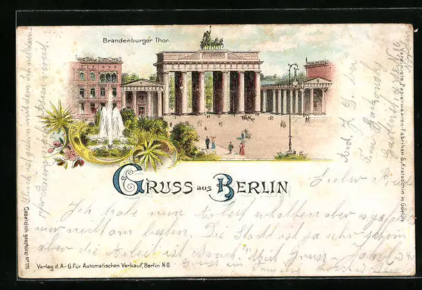 Lithographie Berlin, Partie am Brandenburger Thor