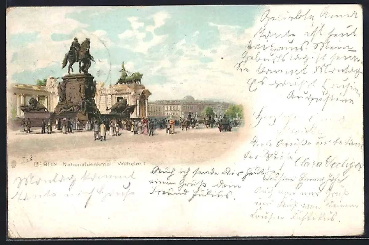 Lithographie Berlin, Partie am Nationaldenkmal Wilhelm I.