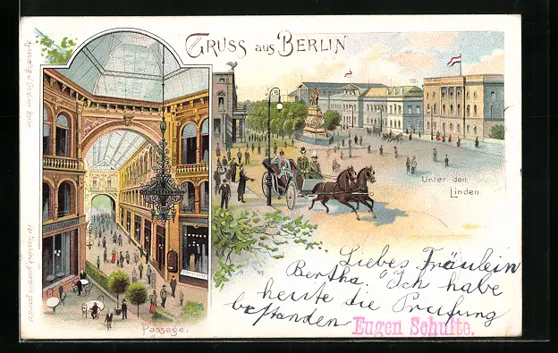 Lithographie Berlin, Passage Unter den Linden Ecke Friedrichstrasse
