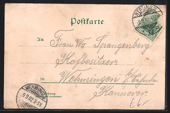 gelaufen 1902, Eckknick re. oben, guter Zustand