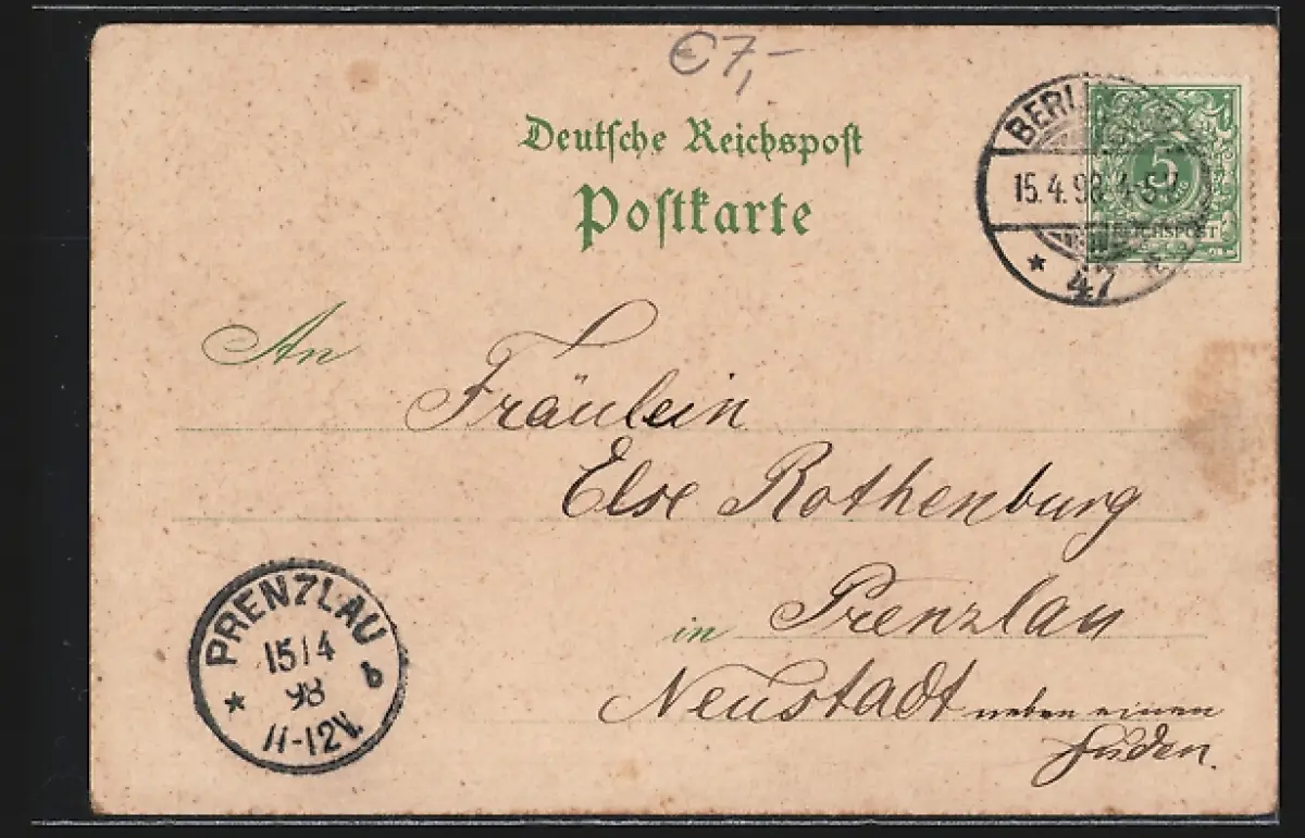 gelaufen 1898, Eckknick oben links, guter Zustand