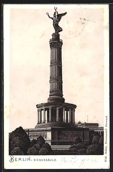 Lithographie Berlin-Tiergarten, Blick auf die Siegessäule