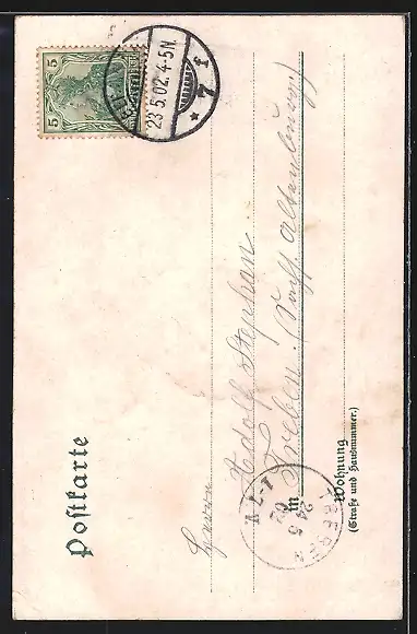 gelaufen 1902, Eckknick li. oben und re. unten, Stempelspur, guter Zustand