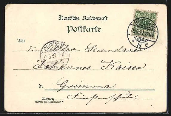 gelaufen 1897, Eckknick oben li., Stempelspur, guter Zustand