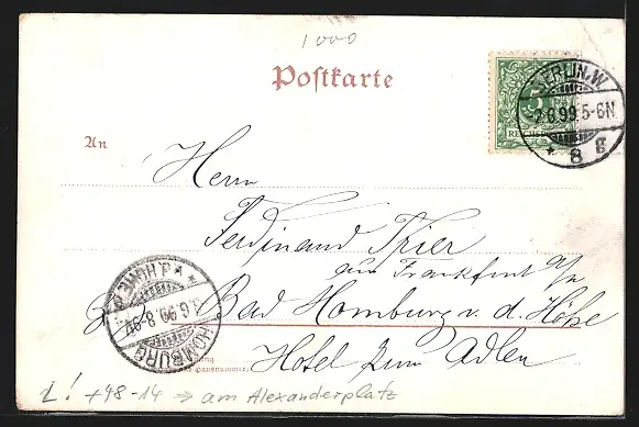 gelaufen 1899, Eckknick oben li., Stempelspur, guter Zustand