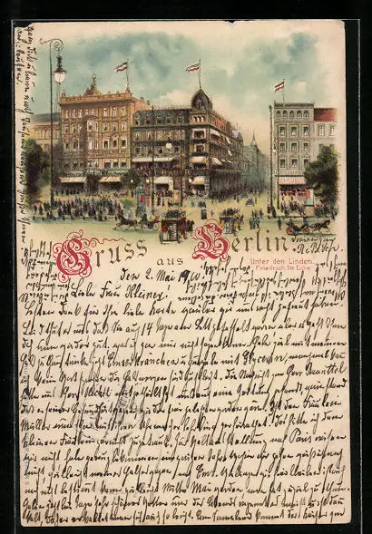 Lithographie Berlin, Unter den Linden, Ecke Friedrichstrasse