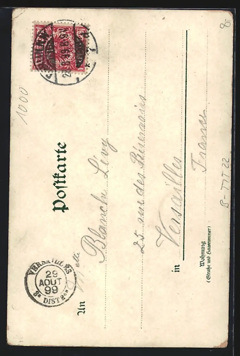 gelaufen 1899, Eckknick oben re., guter Zustand