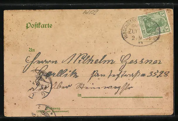 gelaufen 1901, Eckknicke li. oben u. re. unten, guter Zustand