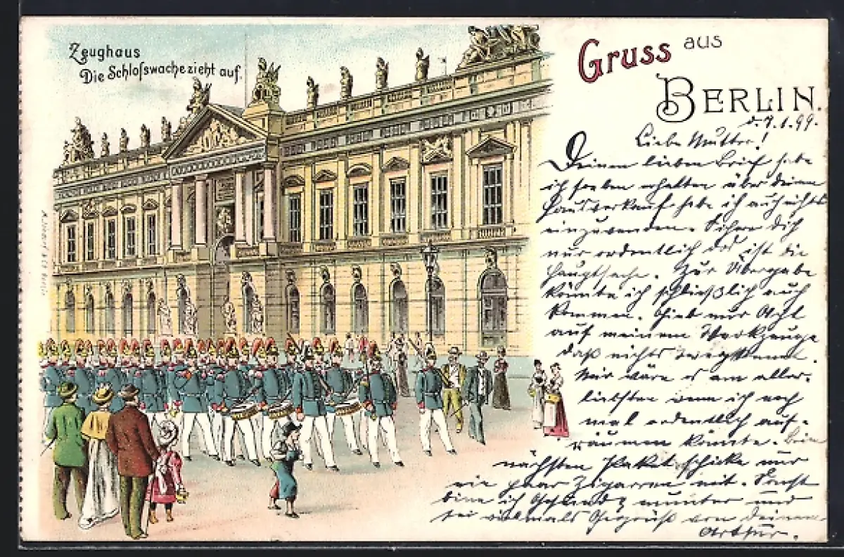 Lithographie Berlin, Zeughaus, Schlosswache zieht auf