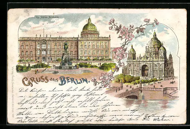 Lithographie Berlin, kgl. Schloss Nordseite, Neuer Dom