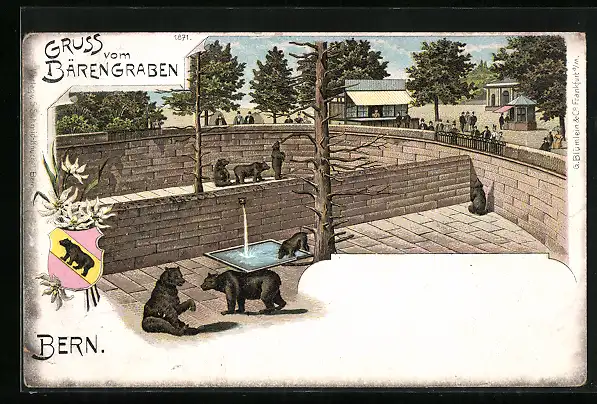Lithographie Bern, Ansicht vom Bärengraben