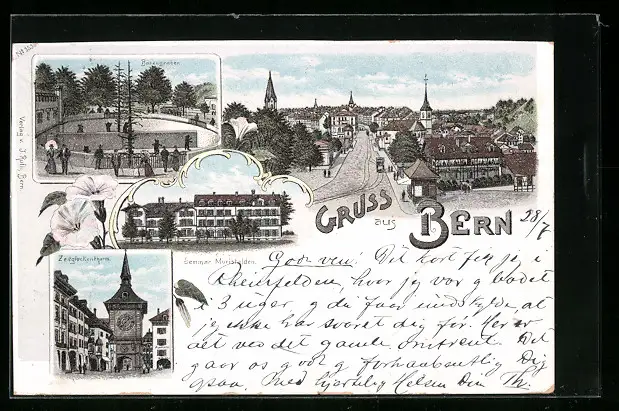 Lithographie Bern, Bärengraben, Seminar Muristalden, Zeitglockenthurm