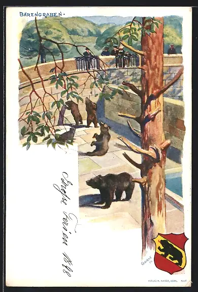 Lithographie Bern, Bärengraben, Steingehege mit Bären