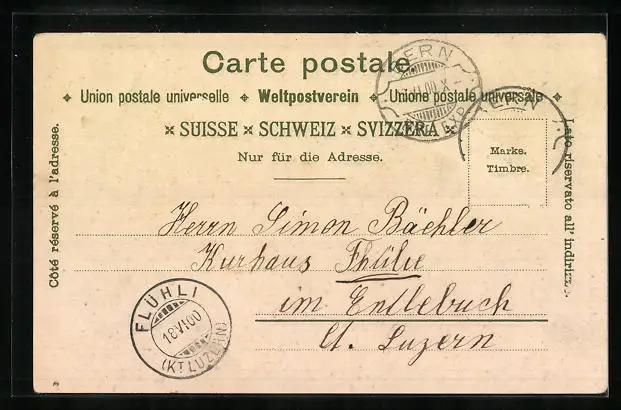 gelaufen 1900, Briefmarke entfernt, rückseitig Oberflächenschaden, guter Zustand