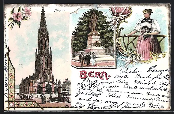 Lithographie Bern, Münster, Bubenberg-Denkmal
