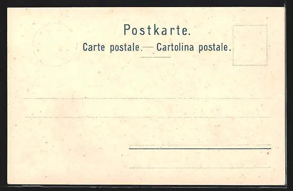 Personenbezogene Daten auf der Rückseite der Karte wurden durch blauen Textmarker unkenntlich gemacht. Die blauen Stellen sind auf die Vorderseite durchgeweicht und wirken sich negativ auf das Postkartenfoto aus