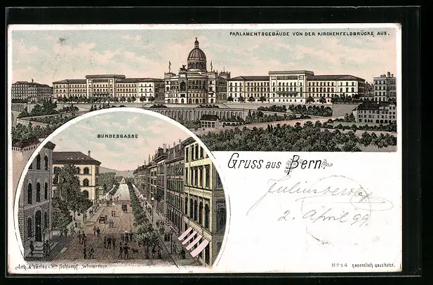 Lithographie Bern, Parlamentsgebäude, Bundesgasse
