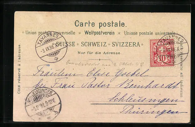 gelaufen 1898, Eckknick re. unten, guter Zustand
