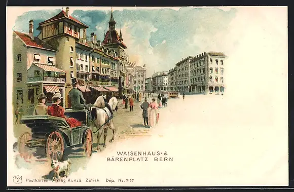 Lithographie Bern, Waisenhaus und Bärenplatz
