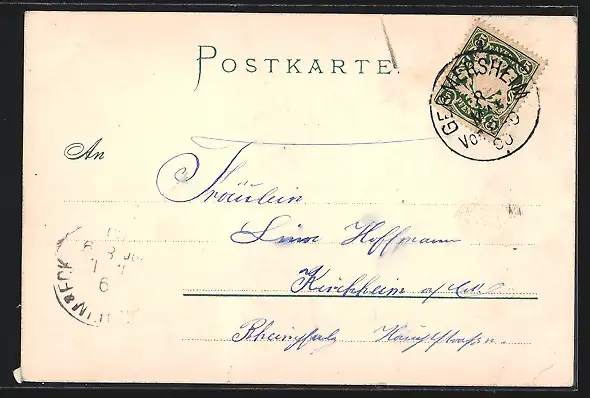gelaufen 1900, Eckknick u. Abrieb unten re., guter Zustand