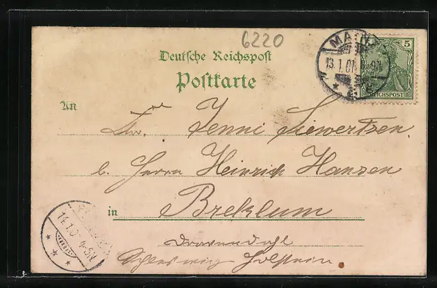 gelaufen 1901, kleiner Einriss re. oben, guter Zustand