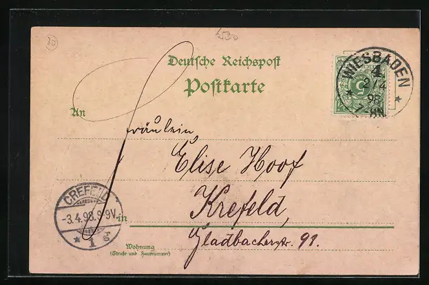 gelaufen 1898, minimaler Einriss re. unten, Bugspur re. unten, guter Zustand