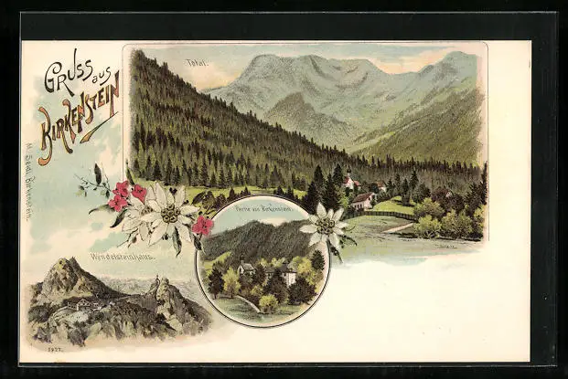 Lithographie Birkenstein, Hotel Wendelsteinhaus, Ortspartie, Totalansicht