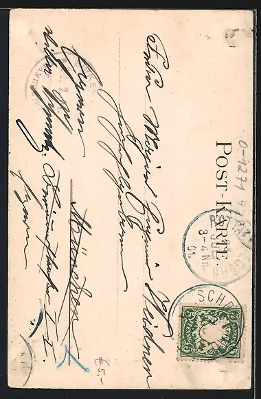 gelaufen 1901, Eckknick unten re. u. oben li., kl. Randschaden li. oben, guter Zustand
