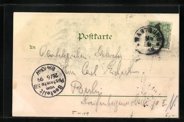 gelaufen 1899, Eckknick li. oben, Stempelspur, guter Zustand