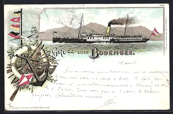 Lithographie Bodensee-Dampfer in voller Fahrt